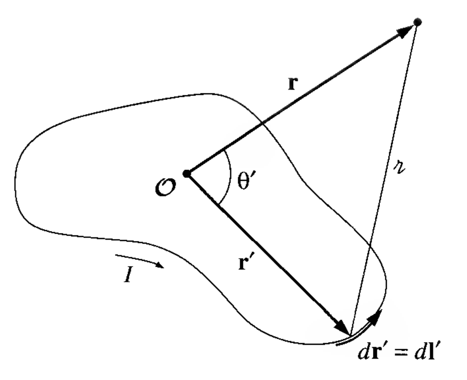 Assume that the current is localized within some finite region around the origin, and we are interested in the potential far away from the source, so that , where is the distance from the origin to a point where we are measuring the potential, and where is the distance between the origin and a point in the current distribution.